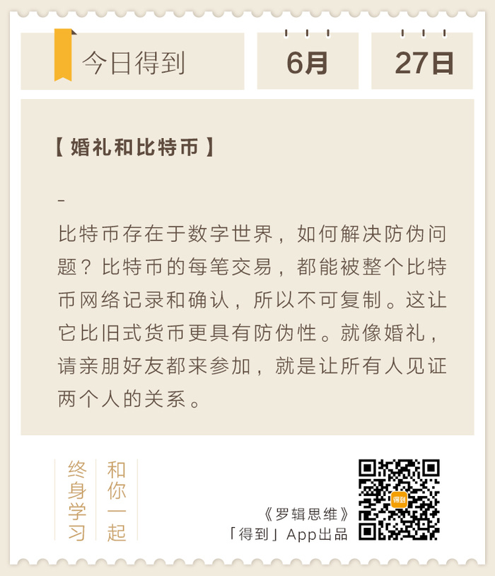 以后,如果有人问你比特币是怎么回事,你可以拿婚礼打个比方,就能基本说清楚它的原理了。
